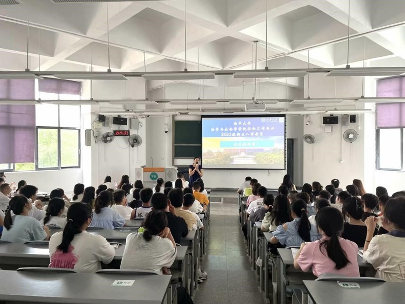 为了增进2023级社会工作专业新生对专业的了解,帮助新生树立正确的学习观,促进师生之间的交流,我院于9月8日在6B302开展2023级社会工作专业教育。学院党委书记张雪征、社会工作系主任刘婷、成都新空间社会工作服务中心胡婷婷、成都市爱有戏社区发展中心余长芳、社会工作专业教师及2023级社会工作专业学生参加会议,会议由刘婷主持。