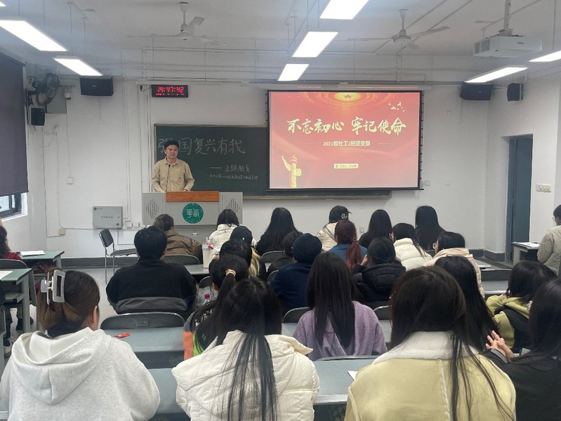 12月7日下午,四川省团省委社会联络部向治东老师来我校参加法学与社会学学院2021级社会工作一班团支部“请党放心,强国有我”主题教育活动并指导基层团组织团员和青年主题教育工作。学院团委指导老师范锡林、2021级社会工作一班团支部全体成员参加了此次活动。本次活动由团支书兰秋曦主持。