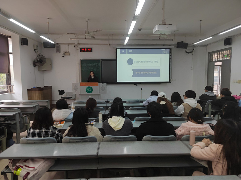 学院学生工作办公室主任奉姣以自己的亲身经历为例,从加强理论学习、锤炼品德修养、心态理性平衡等几大方法技巧,为同学们作了一场“如何成为一名优秀的学生干部”主题讲座,为同学们成长为优秀的学生干部具有指导作用。