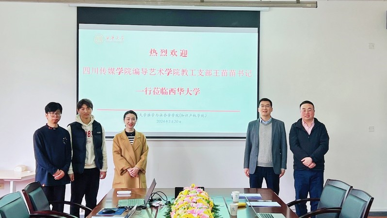 2024年3月20日,四川传媒学院编导艺术学院教工支部书记王苗苗老师、支部纪检宣传委员钱祝良、青年教师党员代表徐小武来我校与法学与社会学学院法学、知识产权系教师党支部开展结对共建工作。法学与社会学学院法学、知识产权系教师党支部书记汪灏老师、支部组织委员陈小鲁老师、纪检委员周春光老师与王苗苗书记一行进行了热烈交流。