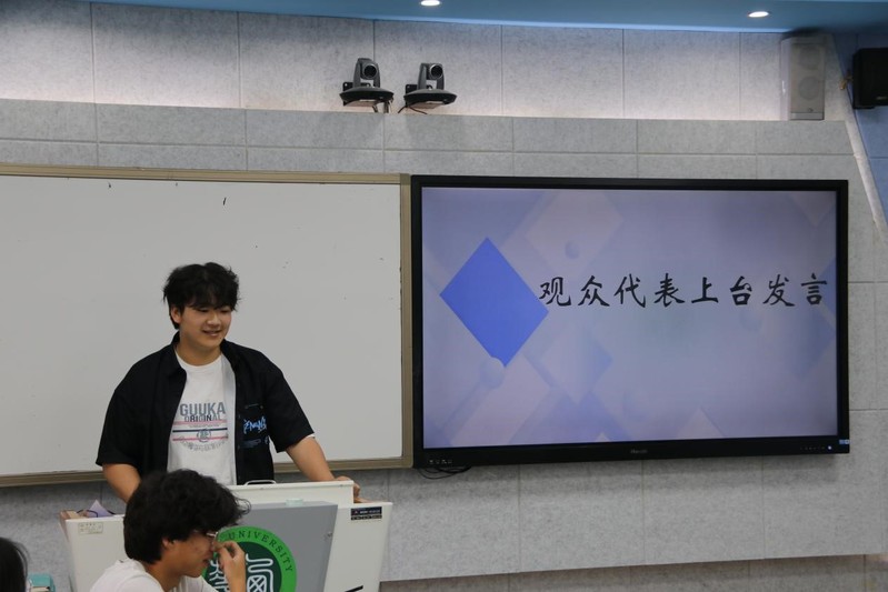 在双方辩手的精彩辩论后,观众代表上台发表了他们对本次辩论赛的感想。观众代表说到:“辩论赛并不是要分出谁对谁错,而是教会人要有转化的思维,于绝境之时寻求回旋之地,要树立正确的思想,建立好正确的价值取向。”
