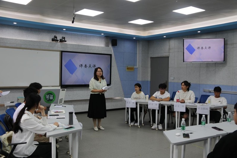 随后,评委们对双方的卓越表现给予了公正评判和细心指导以及提出了合理的建议。辅导员奉姣谈到辩论赛开展的意义,希望同学们能够通过此次辩论赛提升自身的知识素养和思维能力,字字句句透露着对我们的谆谆教诲和殷切期盼,让我们一起谨记于心,共勉前行。同时,也对本次辩论赛的成功举办表示了由衷的赞赏。