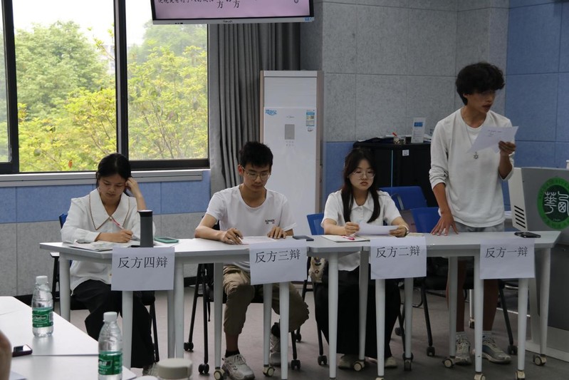 辩论赛中大家妙语连珠,文思飞扬,有争锋相对的唇枪舌战,也有一语中的的醍醐灌顶。在自由辩论环节,双方更是针锋相对,你来我往,精彩纷呈,将比赛不断推向高潮。