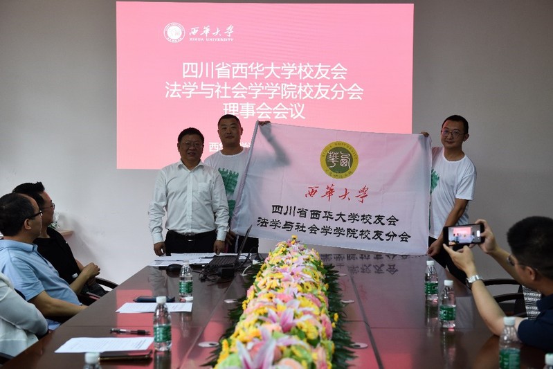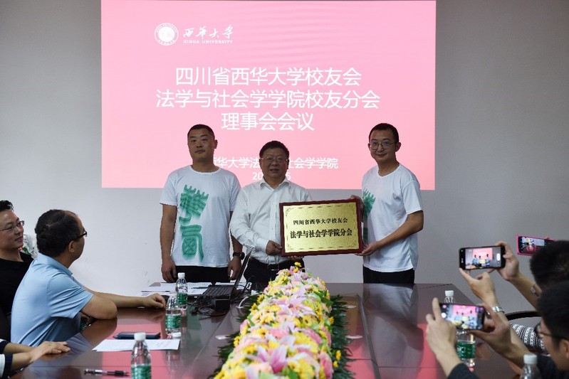 学校党委常委、副校长刘小兵为四川省西华大学校友会法学与社会学学院校友分会授牌、并授会旗