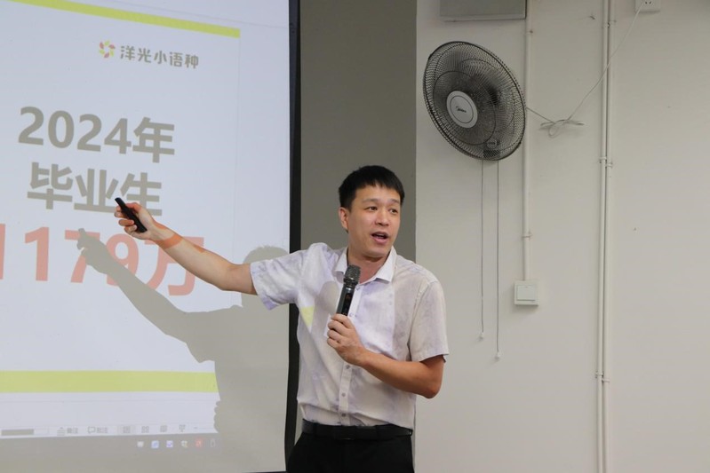 来自洋光外语的李碧云和汪子健老师首先围绕“一带一路”进行了小语种的相关科普,主要介绍了日语和法语这两种语言并结合具体实例详细讲解了法学、知识产权和社会工作专业学生学习小语种的前途和优势,同时还就如何做好小语种学习,规划毕业选择方面作了分享。