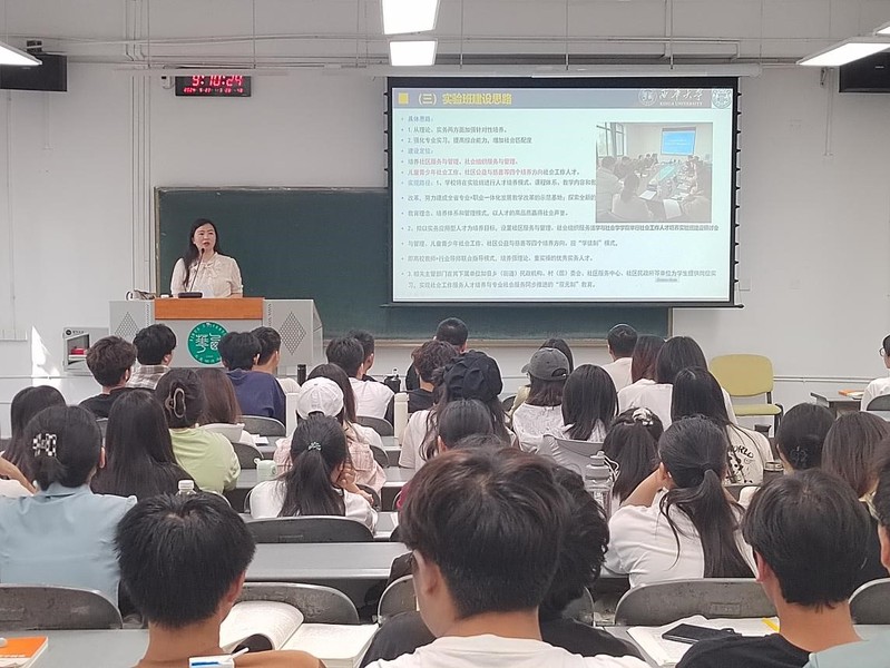 刘婷老师通过专业且详尽的讲解,向同学们介绍了创新实验班的相关政策,涵盖其设立目的、培养模式、优势特色以及对同学们未来发展的积极影响等重要内容,还详细介绍了实验班的四个培养方向,即社区服务与管理、社会组织服务与管理、儿童青少年社会工作、社区公益与慈善这四个培养方向。同时,刘婷老师还表示实验班欢迎热爱社会实践并且日后想要从事社会工作方向的同学加入,并鼓励感兴趣的同学积极参与。