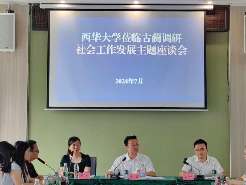 古蔺县座谈会上,服务队与县信访局、县检察院、县委社会工作部、县民政局、县司法局、县农业农村局、县信访局、县残联、团县委相关负责人员,以及有关调研街道、社工总站和社工机构代表人员进行了交流讨论。会上,古蔺县民政局信访局副局长简要介绍了古蔺县社会工作服务体系建设现状以及社会工作参与县社区治理相关情况。县各部门、各社区及社工机构代表分别介绍了各自工作开展情况,并提出相关问题。西华大学“三区”计划团队结合调研工作实际,就社会工作者专业队伍建设、城乡社区资源联动、社工机构持续造血等方面提出了建议与意见。