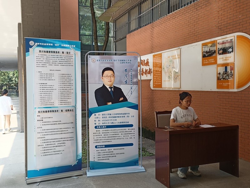 2024年9月26日,法学与社会学学院“笃行”生涯赋能工作室在6A136新模拟法庭举办了“建设工程施工合同纠纷的证据审查”实务讲坛暨四川知雄律师事务所专场招聘活动。