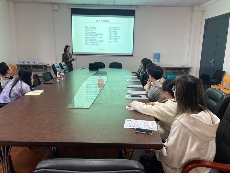 随后,何经理就英格玛集团四川分公司的基本情况做了简要介绍,他谈到英格玛集团成立于2002年,是中国领先的人力资源外包服务机构,集团主营业务包括:制造业外包、服务业外包、法务外包、招聘外包、管理咨询与培训等多个专业服务领域。此次到院宣讲,是在为成都市中级人民法院招聘审判辅助岗位的优秀法辅人才,同时并希望与我院建立长期稳定的合作关系,共同培养更多优秀的复合型法律人才。在互动环节,同学们积极提问,主动了解薪资待遇、晋升渠道等。会后同学们也积极投递简历。