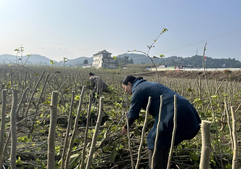 随后,村支部书记带领大家参观水堰口村家庭农场并给大家讲述乡村振兴的历程。在村民的指导下,一行的党员同志们深入农田,学习播种,帮助农户修剪桑树枝,接受劳动教育。