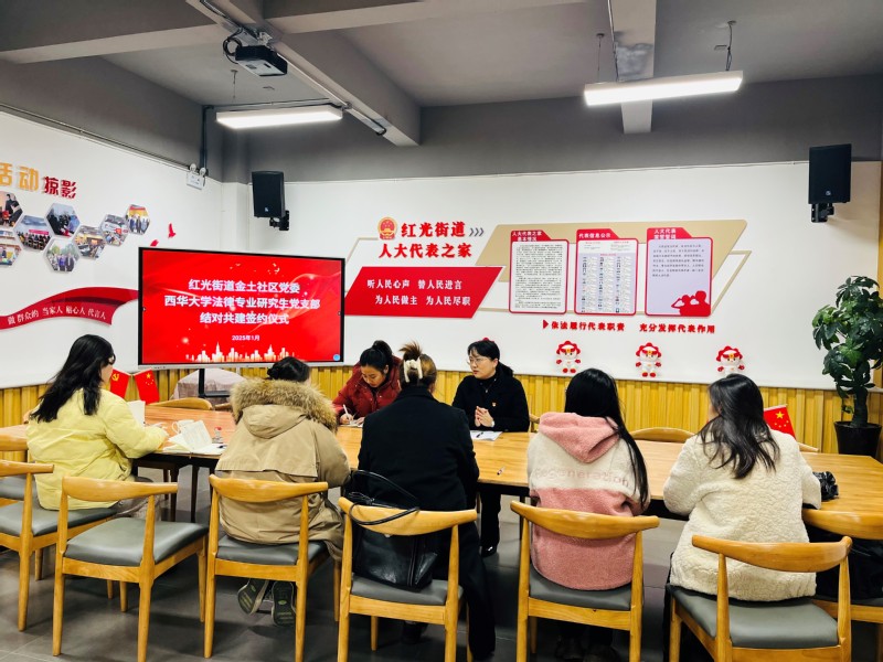 为构建“互带互动、资源共享、共同发展”的高校与社区共建合作新格局,2025年1月10日下午,西华大学法学与社会学学院法律专业研究生党支部与红光街道金土社区党委举行了党建结对共建协议签约仪式。