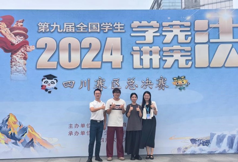 经过学校选拔赛,我校2022级法学专业学生宋国威和2022级知识产权专业钟文君,代表学校分别参加片区赛的演讲比赛和知识竞赛。其中我院22级法学专业学生宋国威在演讲比赛赛道中表现出色,凭借扎实的宪法知识储备和出色的演讲技巧,以片区第一的优异成绩成功晋级四川省演讲比赛总决赛。在总决赛中,宋国威同学更是发挥稳定,以清晰的逻辑、流畅的表达和深刻的见解赢得了评委和观众的一致好评,最终荣获省级三等奖,充分展示了我院法学专业学生的专业素养和风采。