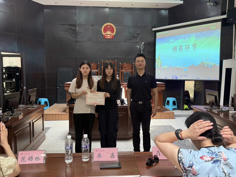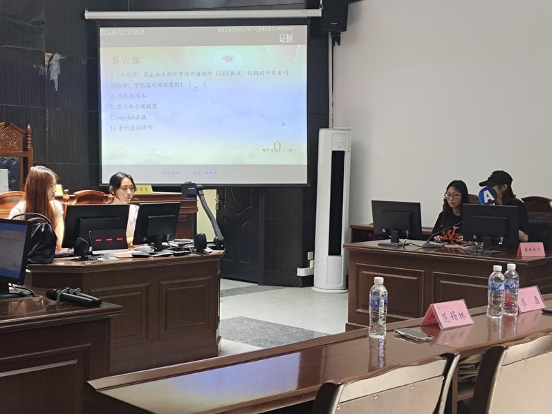 为深入学习贯彻知识产权精神,增强师生法治观念,2025年6月13日中午,知识产权知识竞赛决赛在新模拟法庭隆重举行。学院党委副书记纪委书记廖磊、知识产权系主任吉方英、团委书记范锡林、辅导员高会和陈莎作为评委出席本次活动,与现场师生共同见证这场知识与智慧的激烈角逐。