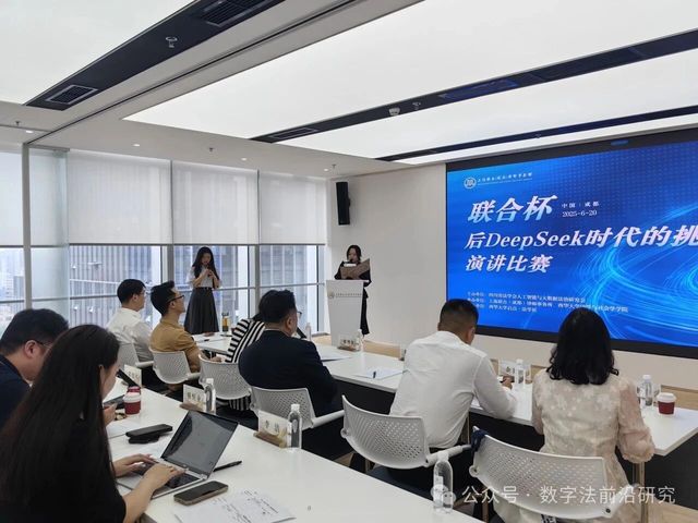 为紧跟人工智能发展前沿,探讨技术变革下的新方向,四川省法学会人工智能与大数据法治研究会于6月20日在上海联合(成都)律师事务所成功举办“联合杯·后Deepseek时代挑战与机遇”演讲比赛。