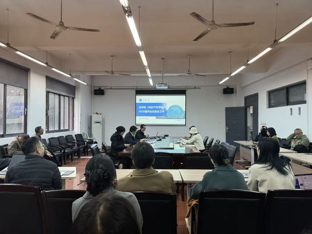原法学与社会学学院党委副书记廖磊就2026届毕业生就业工作进展作专题通报。他指出,学院已系统开展就业考研动员会、毕业生去向摸排、访企拓岗专项行动等工作,并依托毕业生党支部开展就业主题党日活动。当前学院本研学生就业意向明确,就业工作稳步推进。面对软科排名提升等新形势,他表示,学院将进一步强化就业服务,拓展就业渠道,全力促进毕业生实现更充分、更高质量就业。