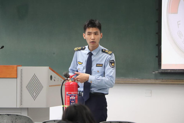 其次,陈教官对近年的消防安全事故进行剖析,由浅入深地说明了用电不当、线路老化带来的巨大安全隐患,提醒大家应定期检查线路安全,做到“人走断电”。他指出,要注意生活中的用电隐患,不能对火灾抱有任何的侥幸心理。与此同时,陈教官普及了火灾预防的具体措施及对于初期火灾的处置方法,并讲解了气溶胶灭火器与防毒面具的使用方法。