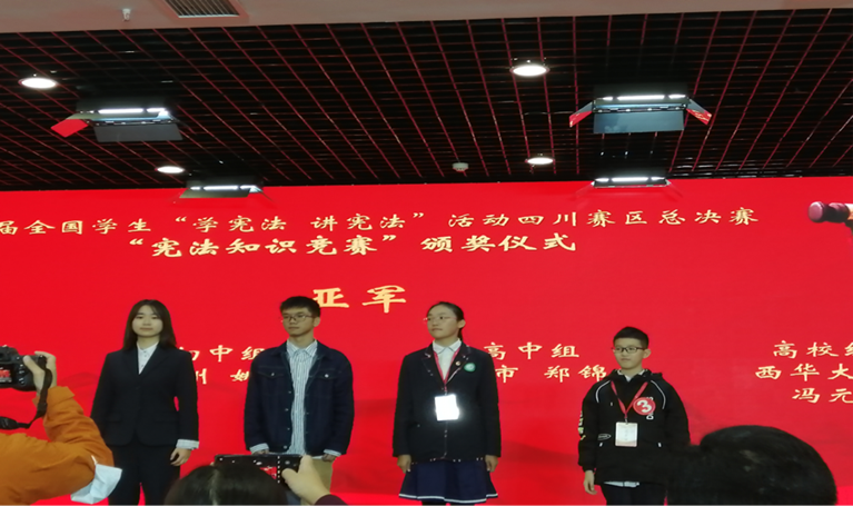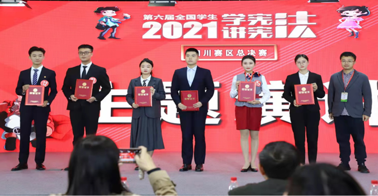 本届“学宪法 讲宪法”比赛自开赛以来,通过小组赛的激烈比拼,各个片区选拔出前三名进入总决赛。来自各大高校的优秀选手们一路过关斩将,最终会师总决赛。何政昱凭借扎实的宪法知识储备以及出色的演讲能力,惊艳四座。冯元沉着应战,灵活运用宪法知识,在宪法知识竞赛中展现出了高素质的法律素养与专业的知识储备能力。最终,何政昱荣获本次第六届“学宪法 讲宪法”四川赛区总决赛演讲比赛第三名,冯元荣获本次第六届“学宪法 讲宪法”四川赛区总决赛法治知识竞赛亚军。