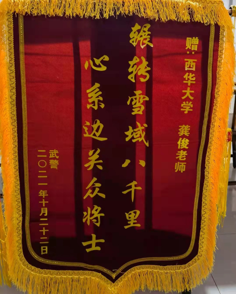 龚俊老师严谨尽责的态度和全面过硬的专业能力受到了该单位的高度认可,部队领导亲自向龚俊老师赠予“辗转部队八千里,心系边关众将士”的锦旗。