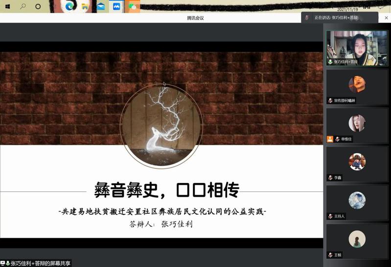 11月19日下午,“美好社会·益起参与”四川省大学生公益项目设计大赛决赛(西华大学站)暨西华大学第四届创新创业慈善大赛答辩会在线上举行。大赛邀请了西华大学法学与社会学学院熊征老师、刘文娜老师、冉连老师和谢缘老师担任本次大赛评委。