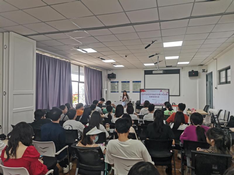 2022年5月11日,西华大学法学与社会学学院学生第六党支部在6D408召开全体党员大会,讨论接收刘双鑫等6名同志为中共预备党员事宜,会议由支部组织委员周洁羽同志主持,全体党员参会。