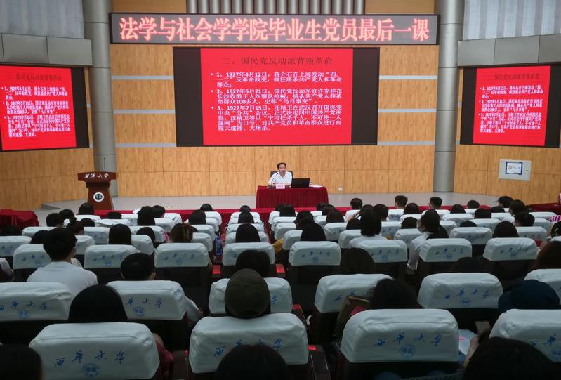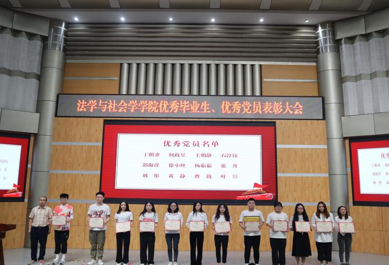 为进一步做好2022届毕业生党员教育、管理和服务有关工作,表彰和激励学院党务工作者不断做好做优党建工作,5月24日中午12:30,法学与社会学学院党建工作室在四教报告厅顺利举行优秀党员、优秀党务工作者表彰大会暨毕业生党员最后一课活动。学院党委书记张雪征、院长张邦铺、学院党委副书记廖磊、副院长王黎黎、熊征、学院专职组织员张新泉、各学生党支部书记以及学院全体学生党员参加本次大会。