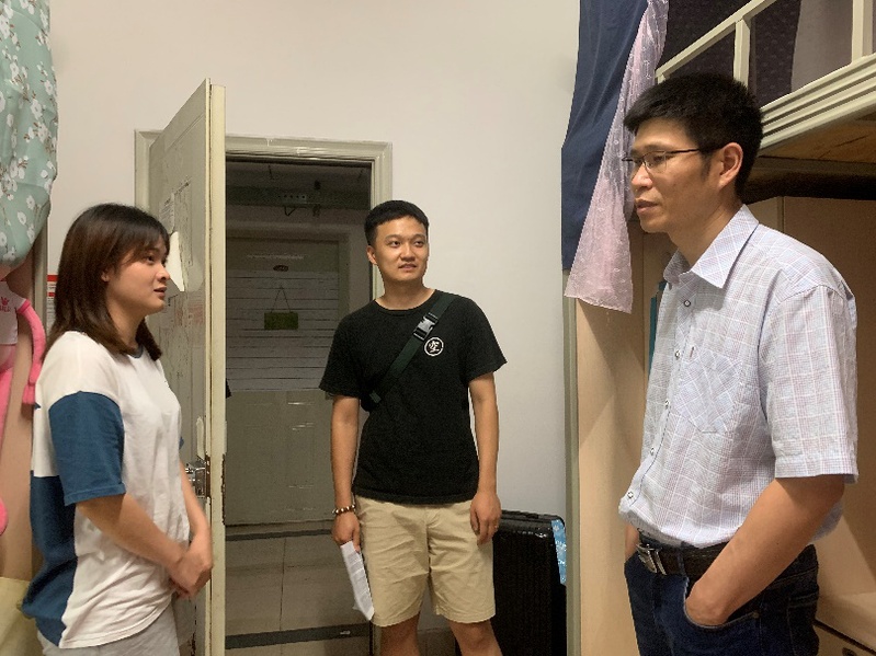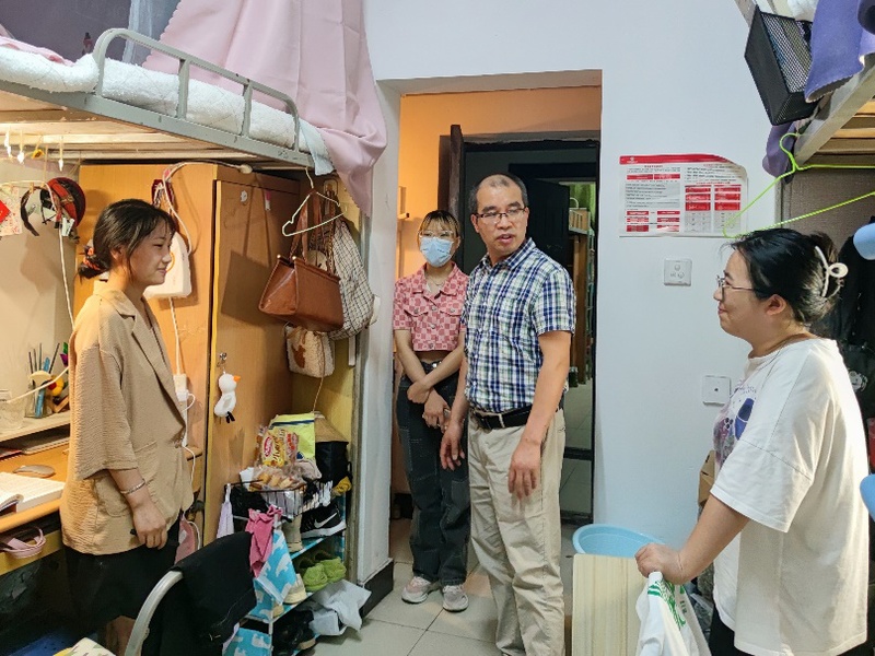 张雪征书记在走访中,与同学们面对面亲切交流,在关心毕业生们毕业去向的同时,也为求职中的毕业生们提供就业建议,并且强调了寝室安全问题和楼道畅通问题,提醒毕业生们在离校前检查好个人物品并做好寝室防火防盗等安全措施,做到安全离校,有序离校。