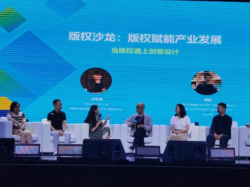 在版权沙龙活动中,吉方英老师同成都许燎源现代设计艺术博物馆馆长许燎源、成都知识产权法庭高级法官兰田、成都大熊猫文化产业促进会秘书长杨蛟、光厂创意CEO杨达、成都都八角沃克文化传媒有限公司总编辑王春晓、进托邦CEO陈成共同围绕版权+创意设计、版权+互联网环境下,版权如何赋能产业升级、促进产业高质量发展进行了现场分享、交流和讨论。