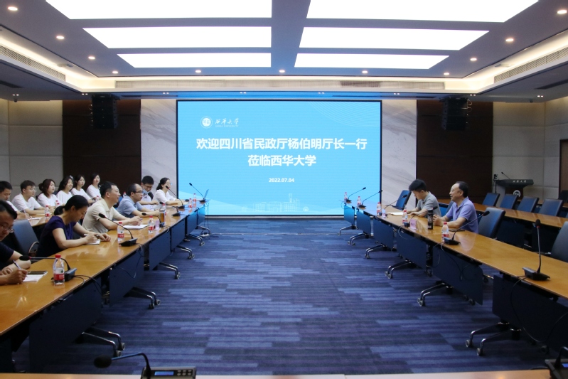 郑鈜副校长对杨伯明一行表示欢迎和感谢,并提出三点希望:一是希望四川省民政厅继续支持学校相关专业学科建设,同时学校也将高度重视社会工作等相关专业的发展,为省民政厅相关工作做好服务;二是希望发展具有中国特色的社会工作及社会学理论和实践体系,积极配合省民政厅开展“彝路相伴”智援凉山三年行动,更好的推进中国特色社会主义的社会工作理论和实践体系建设;三是希望前往彝欣社区的师生注意安全,做好自身的防护。