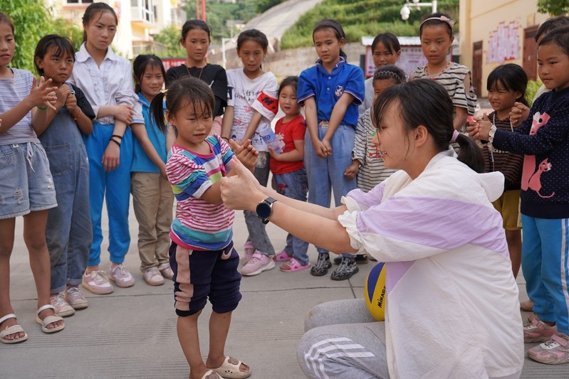 据了解,为让彝欣社区的儿童更加深入地了解社区设施和特色场所,增强儿童的主人翁意识,服务队在社区范围内设置了村史馆、妇女就业培训基地、妇女之家彝绣工坊、阿普如哈彝族漆器厂、辉扬服饰加工有限公司、喜德县创业孵化基地就业示范基地、喜德县残疾人活动之家七个打卡点,分别在打卡点设置了“乒乓球过河”、“纸张过河”、“你比我划”、“筷子夹球跑”、“气球爆破战”、“沙包投壶”、“多人竞足”关卡。活动采取小组工作的方法,每个小组分配一个服务队成员,由儿童讨论决定打卡路线,服务队成员引导儿童进行团队高效协作,增强团队互助意识。