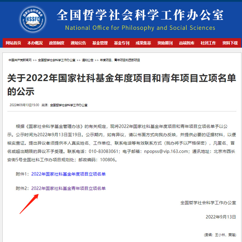 2022913日,全国哲学社会科学工作办公室网站发布了2022年度的国家社科基金年度项目、青年项目、西部项目的立项公示名单。