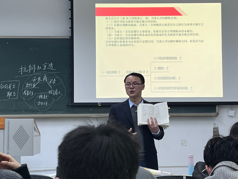 理论、案例、解释方法相结合的讲解方式深受同学们喜爱,但同学急需法律研究方法的培训。禹律师又细致比较了《中华人民共和国民法典》《欧洲示范民法典草案共同框架》《国际商事合同通则》解除权行使规则的差异,揭示我国解除权行使规则混合继受的模式,并进一步指出混合继受模式导致规范之间的冲突与断裂。同学们由此领悟到,比较法研究不仅是发现问题的重要方法,而且是解决问题的重要途径。最后,禹律师亲切地与同学们互动,给同学们答疑解惑,在鼓掌声中,本次讲座取得圆满成功。