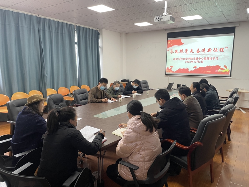 2022122日上午,法学与社会学学院党委理论学习中心组会议在6D-301会议室召开,专题传达学习党的二十大精神,进一步研究部署、学习宣传、贯彻落实相关工作。按照学校党委理论学习中心组列席旁听工作的部署要求,校党政办主任周斌、能源与动力工程学院党委书记江启峰、校党政办工作人员周宇浩列席了会议,学院党委委员全体成员出席会议。学习会由学院党委书记张雪征主持。