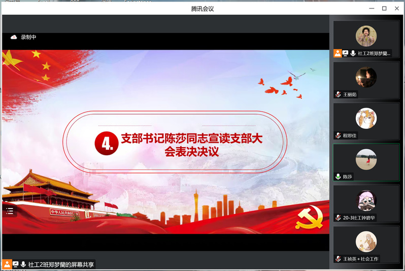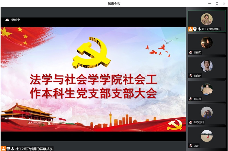 2022年12月8日,星期一下午14点,法学与社会学学院社会工作专业本科生党支部,在线上召开支部大会。