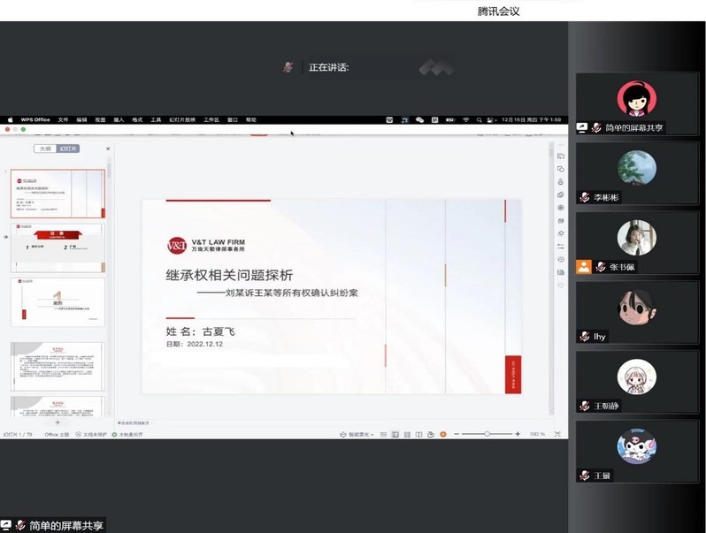夏飞老师通过对案例的深入分析,让同学们明白理论需和实践联系起来才能被更好的吸收和消化,也让同学们对《民法典》中婚姻家庭编和继承编的法规有了更深刻的认识。在讲座的最后,同学们向古夏飞老师请教了婚姻家庭编的相关问题,包括近年来的热点“居住权”的相关问题,古夏飞老师根据自身实践经验和对法条的深度理解解答了同学们的疑惑,其温柔严谨的表达让同学们如沐春风。陈珊老师就理论要点进行了评述和总结。此次课堂理论与实践相连,加深了同学们对继承权相关问题的理解,深受同学们喜爱。