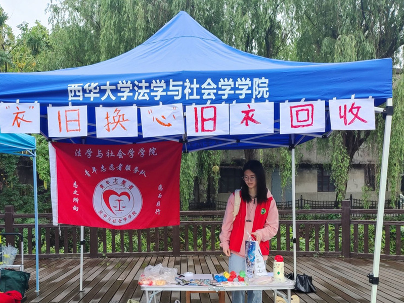 暮春已至,初夏将来。落花、小雨、微风,在这个充满诗意的季节,法学与社会学学院青年志愿者服务队开展的“‘衣’旧换‘心’,让爱循环”旧衣回收活动如约而至。活动于4月22日正式开始,此次活动分别在西华大学锦地苑、临江苑门口开设回收捐赠点。