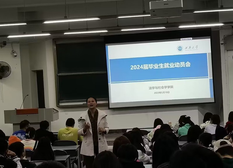 为扎实推进2024届毕业生就业指导工作,帮助毕业生明确就业目标,做好职业规划,西华大学法学与社会学学院于2023年5月10日分别针对法学、知识产权、社会工作、劳动与社会保障四个专业召开专场毕业生就业动员会,2024届全体毕业生到场参会。