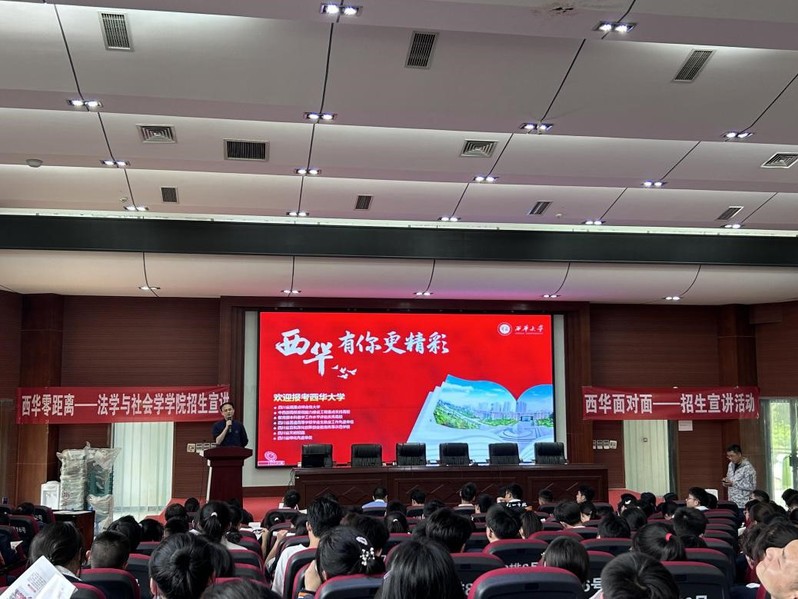 招生宣传是招生工作的重要组成部分,是提高学校知名度和生源质量的重要手段和基本保证。为更好地宣传我校及我院办学成就和人才培养特色,吸引更多的优秀学生关注和报考西华大学,5月22日法学与社会学院院长张邦铺一行四人前往眉山市仁寿一中开展2023年招生宣传工作。仁寿一中师生共计300余人参加了此次宣讲会。