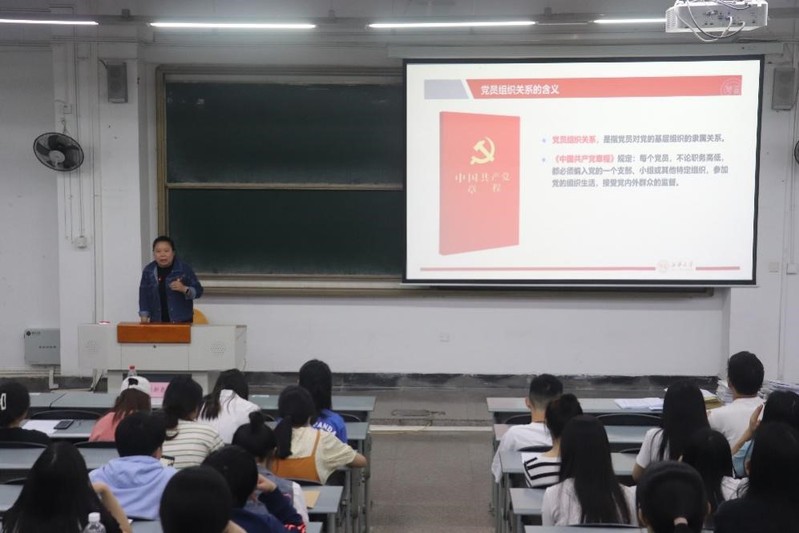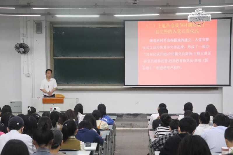 首先张新泉副教授以“回顾入党宣誓的历史演变,在新征程上践行入党誓言”为专题进行党课授课。课上,张新泉副教授详细介绍了我国入党誓词历史演变的七个过程,带领同学们重温了1982年写入党章并沿用至今的入党誓词。接下来,他引导同学们思考如何在未来几十年的人生道路上践行自己许下的入党誓言。他强调,我们应当立足本职岗位践行入党誓言;关键时刻积极响应党的号召,吃苦在前,冲锋在前;在面对金钱美色利诱时,用入党誓言警醒自己,坚守一名共产党员的政治底线。最后,张新泉副教授号召同学们要凝聚青春力量,彰显青年担当,在实现中华民族伟大复兴中国梦的历史征程上,让绚丽的青春之花绽放在祖国最需要的地方,以实际行动践行党的二十大精神。
